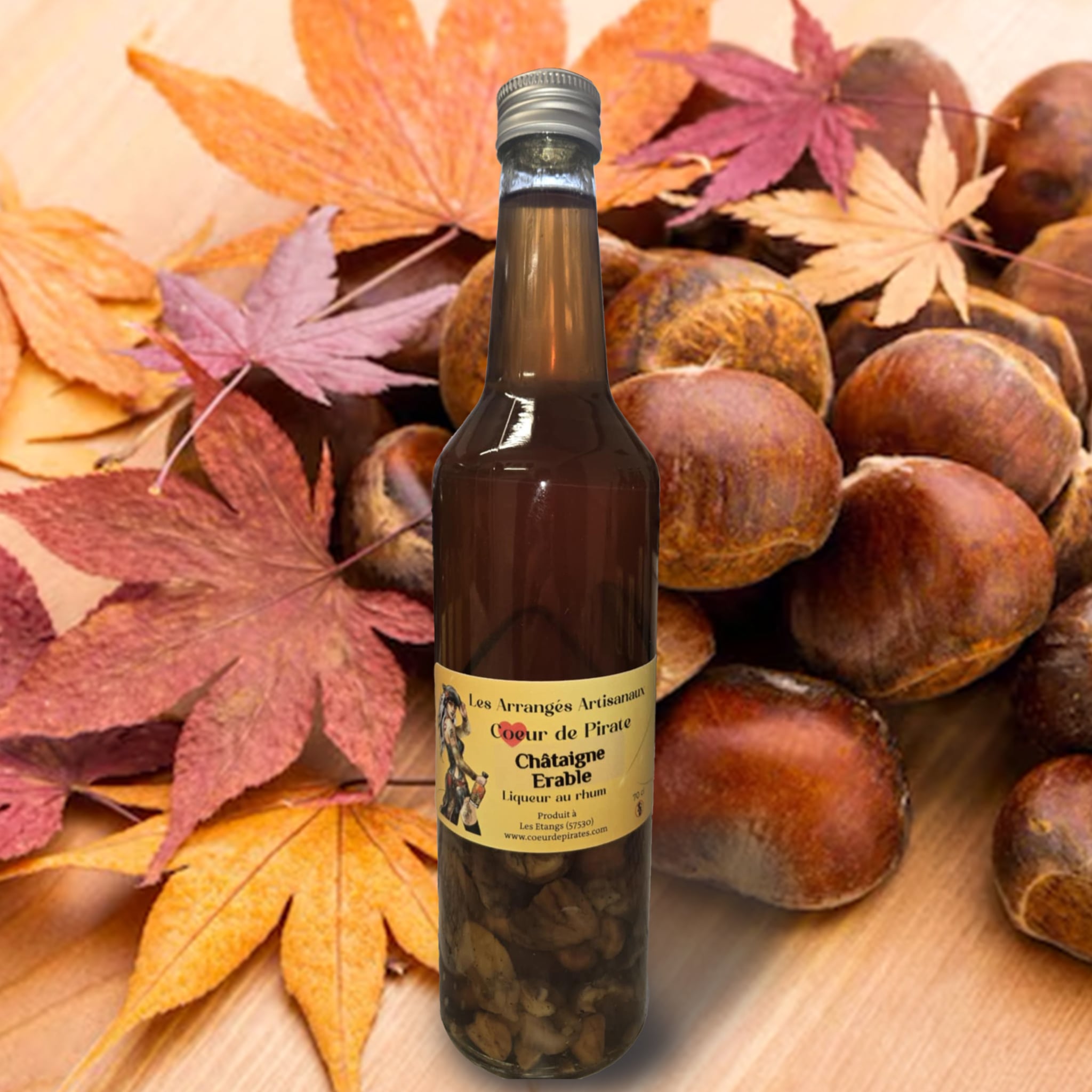 Ce rhum arrangé d’exception marie la gourmandise des châtaignes lentement cuites au feu de bois à la douceur enveloppante du sirop d’érable, le tout sublimé par un rhum vieilli un an en fût de chêne neuf.